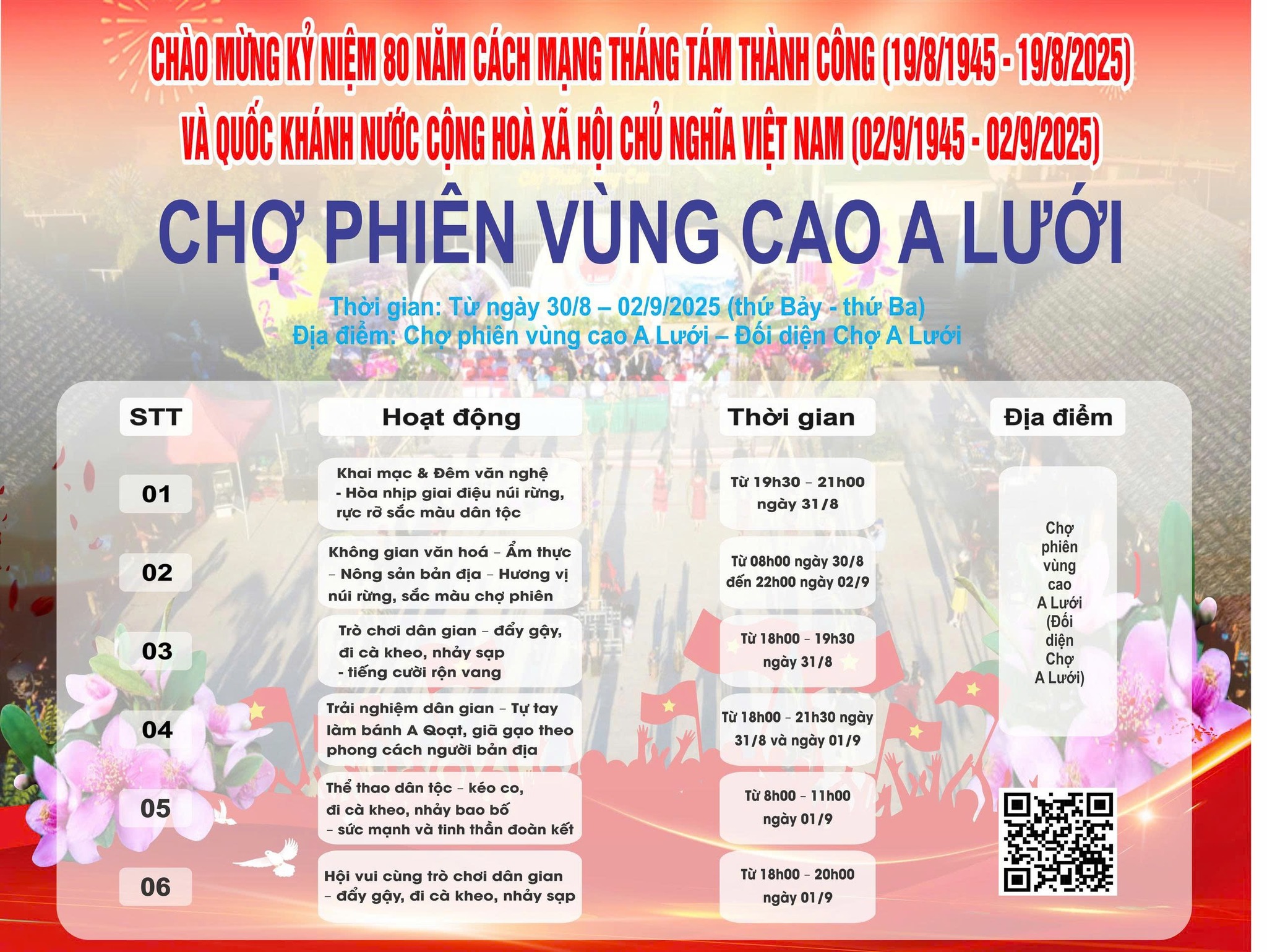 30.08.2025 - 02.09.2025 Khu vực Chợ phiên vùng cao A Lưới – đối diện Chợ A Lưới 08/30/2025 00:00:00